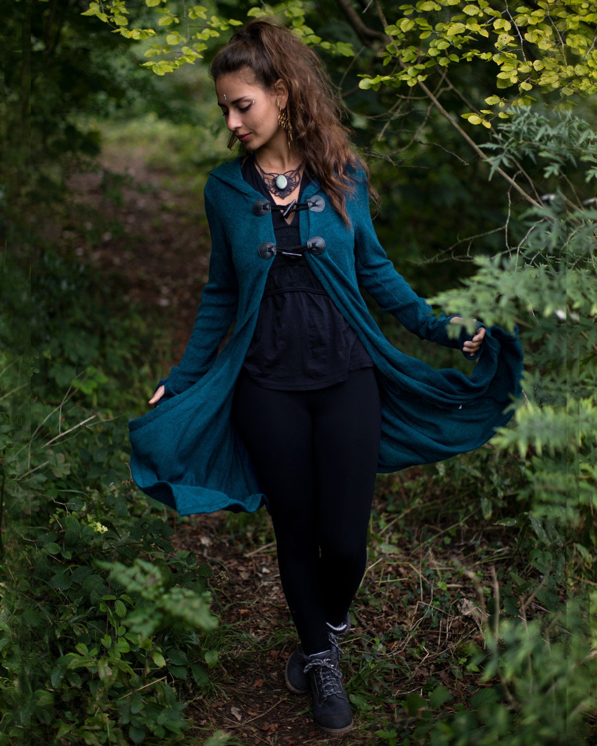 Saphir Blaue Elfe Asymmetrische Feen Kapuzenjacke Lange Boho Etsy De